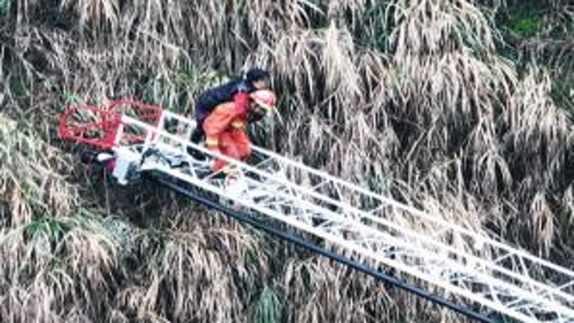 女子被困杂草丛中4小时 诸暨消防架设云梯巧救援