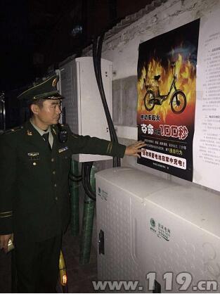 此外,丰台消防支队防火监督员还以此次集中检查为契机,积极在平房区附近张贴宣传海报,并向平房区居民发放电动自行车火灾防范等宣传资料,提醒他们要及时发现并消除身边存在的各类火灾隐患,严防火灾事故的发生。