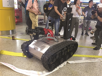 就在浓烟滚滚之时,消防队员暂时看不清前方具体情况,地铁负二层平台突然出现了两台机器人。原来,这是隶属南京消防支队的两台灭火机器人。这两台机器人开始工作以后,在履带的帮助下顺利从负二层下楼梯来到了负三层乘客站台。与此同时,机器人上携带的摄像头可以将实时画面传输至操作员处。机器人身上携带的水枪可以执行一定的灭火任务。记者在负二层的平台处看到了消防员正在操作这两台消防机器人。一名消防人士告诉记者,机器人可接通水带,最远可达300米,可以上下45°的斜坡。由于表面都是金属,机器人也可以尽量靠近火场。