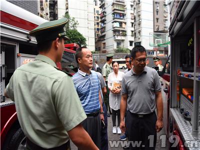 考察中,考察组一行在重庆消防总队、重庆渝中支队相关领导陪同下,深入重庆渝中区较场口消防中队进行实地考察,先后参观了中队消防车库、消防宣传教育馆、装备器材室、通讯室、战斗班、学习室等库室,认真听取了中队负责人就中队辖区概况、部队日常管理、警营文化建设、功能库室设置及士兵管理、通讯工具管理等工作开展情况的介绍,并观看了中队正规化管理工作汇报片。