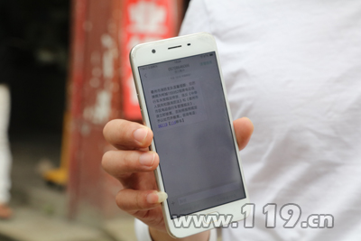 “衢州市消防支队温馨提醒:您的牌照为柯城09***3临牌电动自行车未按规定停放,违反《中华人民共和国消防法》和《衢州市市区电动自行车管理规定》,请立即驶离,否则将按照规定予以处罚并搬离。”不一会,该小区业主陈先生收到“114”短信通知,并立即到场将自己违停的电动自行车挪到了安全区域。