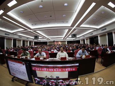 会上,王天瑞副处长从《消防安全责任制实施办法》的背景意义、起草过程、总体思路和重点内容等方面对进行了解读,深入分析了当前消防安全形势,并结合近年来的典型火灾事故案例,对火灾事故调查处理和党委政府、行业部门、社会单位责任追究的有关情况进行了详细解读,对全省进一步深入学习、宣传、贯彻、落实好《消防安全责任制实施办法》具有很强的指导意义。
