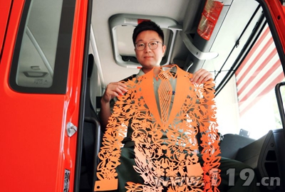 借父亲节来临之际,杭州支队拱墅大队宣传员利用空余的工作间隙,精心设计,用心雕刻,用创意纸雕作品“父亲的新衣”为尽职尽责的消防父亲们送上节日的礼物!