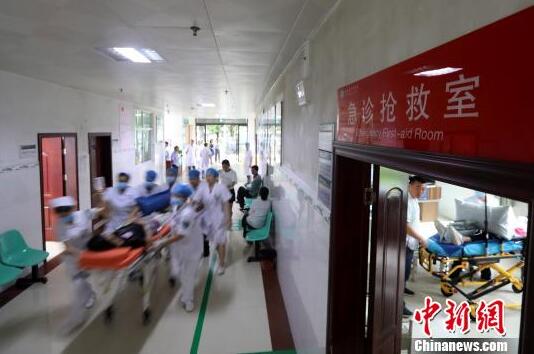 参加演习医护人员在医院内紧急救治。 覃庆和 摄