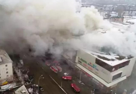 3、今年3月25日,俄罗斯克麦罗沃一家购物中心发生火灾,大约12小时后火情才被控制,过火面积约1500平方米。建筑物遭受严重破坏,屋顶和地面部分塌陷。火灾导致60人死亡,由于商场有游乐区,遇难者大部分为儿童。