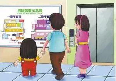 着火时,一定不要乘坐电梯,选择楼梯进行逃生,防止被困在电梯内发生危险。