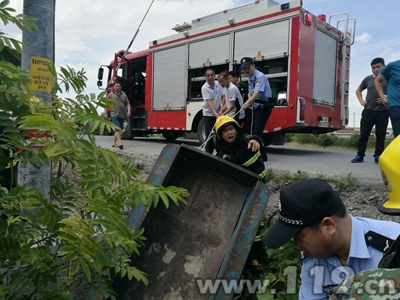 经过近20分钟的齐心救援,三轮车司机被成功救上岸。司机除小腿擦伤外,并无其他外伤。