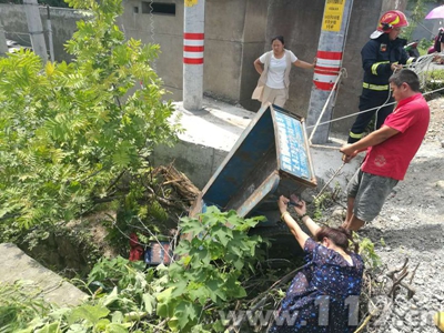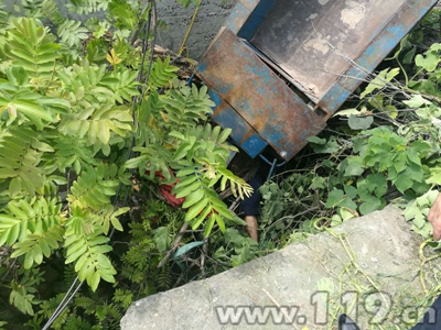 13时47分,春江中队到达现场。据现场了解事故为电瓶三轮车避让车辆,不慎冲下道路,驾驶员被卡树杈上,三轮车压在了驾驶员身上,下方水流湍急,稍有不慎就会落入水中。现场指挥员下达作战任务,一组人员携带救援工具顺着石壁下至驾驶员身边,用安全绳和腰带将人员做好固定,防止人员掉落水中,同时另一组人员协同民警利用绳子固定三轮车,防止其下滑。做好安全措施后,第一组人员齐心将被困人员托举上来。