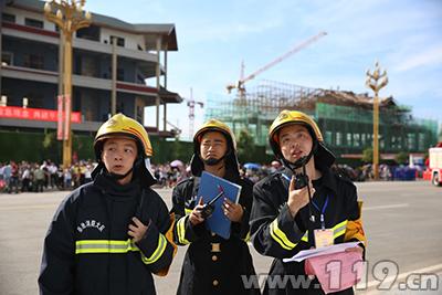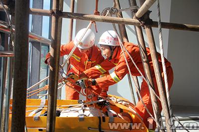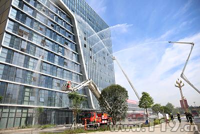 6月26日上午,四川广安消防举行2018年高层建筑应急演练。