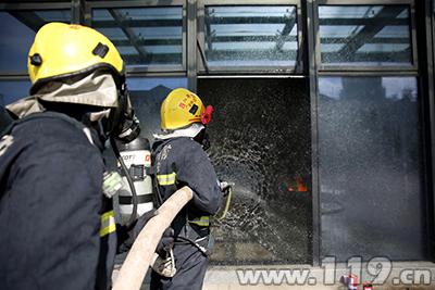 9时30分,安全员观察现场情况后,向指挥员汇报:发现楼内存放有液化石油气罐,并在泄漏,随时有发生爆炸的可能。现场指挥员得知情况后立即向火场指挥部报告,并命令所有救援人员立即撤离大楼!就在所有救援人员撤离大楼后的几秒钟,随着几声巨响,3楼再次发生爆炸,整栋大楼瞬间被熊熊烈火包围!与此同时,楼内所有被困群众已全部安全救出,所有救援力量全部准备到位。随着指挥部一声令下,现场的所有水枪、水炮同时向火场射水,对大火发动了最后的总攻。消防水枪和水炮组成一张巨大的水网向熊熊的大火撒去,肆虐的火魔正作最后的垂死挣扎。