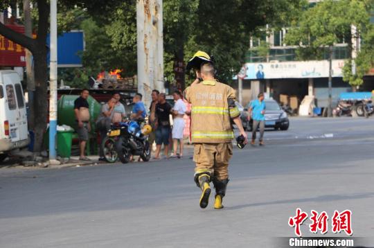 在其身边的椅子上,挂着刚刚脱下的消防服。记者注意到,其比冬日人们常穿的棉服还要“厚重”很多,而消防服的里子,已经被汗水浸透,几乎可以拧出汗水。