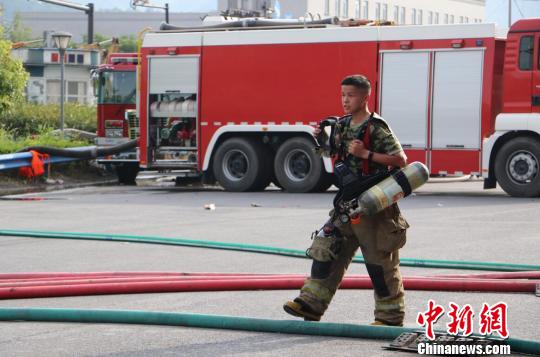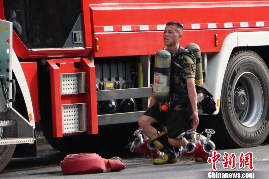 记者从火场边高层建筑走下时,遇到一位刚出火场不久,正在蹲着休息的消防战士。20多岁模样的他看起来很是“平静”。“早上9点赶过来的,这算是遇到的比较大的火灾,刚刚在里面呆了三个小时。”