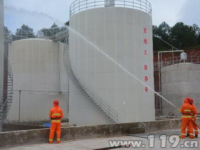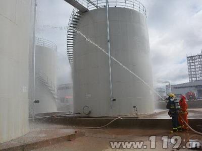 “险情”发生后,森美达生物有限公司工作人员立即拨打119报警,同时组织单位微型消防站人员利用厂区市政消火栓供水对着火油罐进行冷却。