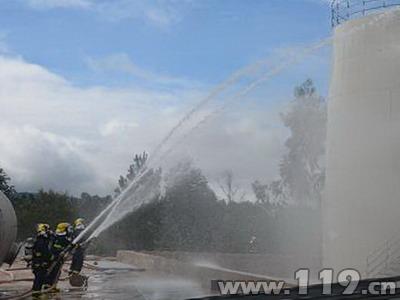 此次演练灾情假设:当天上午9时05分,森美达生物有限公司3号储油罐因操作人员操作不当引发火灾,情况十分危急,如救援不及时,将导致3号储油罐爆炸并危及周边3个储油罐。