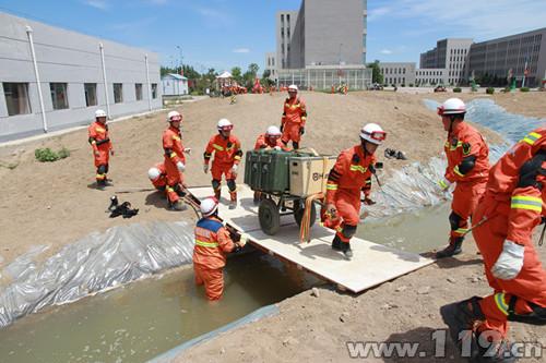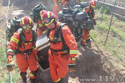 演练假设20日6时50分,呼和浩特市某村发生6级地震,位于震中区域建筑物倒塌损毁严重,有人员被埋压。总队在未事先通知的情况下,于7时由指挥中心向呼和浩特市支队下达灾情出动命令,要求调派1支重型地震救援队赶赴灾害现场,同时调派包头市支队1重型地震救援队和乌兰察布市支队1支轻型地震救援队跨区域增援,应急通信保障分队遂行保障。接到命令后,各参演力量快速反应、迅速集结,全力赶往灾害区域,并在行进途中利用卫星电话和总队指挥中心、前方指挥部保持不间断联系,汇报途中情况,实时了解灾区情况。8时5分,呼和浩特市支队重型地震救援队到达指定地点。10时40分和11时,乌兰察布市支队和包头市支队分别抵达灾区。点验人员、装备后,在模拟道路桥梁损坏车辆无法通行的情况下,各救援力量携带装备徒步近3公里赶赴震中演练现场,全力开展救援行动。