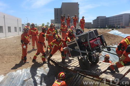 此次演练本着立足实战、从难从严的原则,总队专门抽调业务骨干成立了导调组,对演练组织指挥、救援行动、应急通信等课目进行全过程评估和考核;充分利用培训基地营区特点和建(构)筑物坍塌训练区等模拟设施,科学设置了徒步行进、生命迹象搜救、平衡支撑救援、向下破拆救援、狭小空间横向破拆救援、“米”字型支撑、车辆事故救援、夜间照明、饮食保障等12项实战演练课目以及无公网状态下的应急通信保障课目,全方位检验了参演地震救援队和应急通信保障分队的实战水平。
