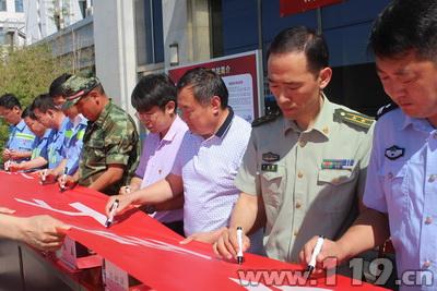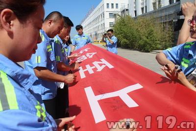 演练开始前,近百名企业员工纷纷在书写有“生命至上安全发展”的红色横幅上,郑重的签下自己的名字,表明了自己将时刻关心关注安全,共同预防安全事故的坚定决心和承诺。