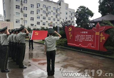 重温誓词,铸牢警魂。组织全体党员官兵面向党旗庄严宣誓,重温入党宣誓,每名党员认真回顾申请入党时的理想和信仰,回顾入党宣誓时的庄严承诺和坚定决心,始终牢记党的宗旨,遵守党的章程,竭诚为党奉献,用实际行动为党旗增辉。