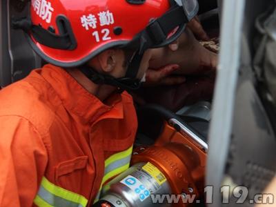6月30日15时20分,台州支队开发区消防大队接到报警称:区东开发区大道移动公司前面路段,两辆货车追尾,其中一人受伤被困车内。接警后大队迅速出动1车7名官兵赶赴现场处置。